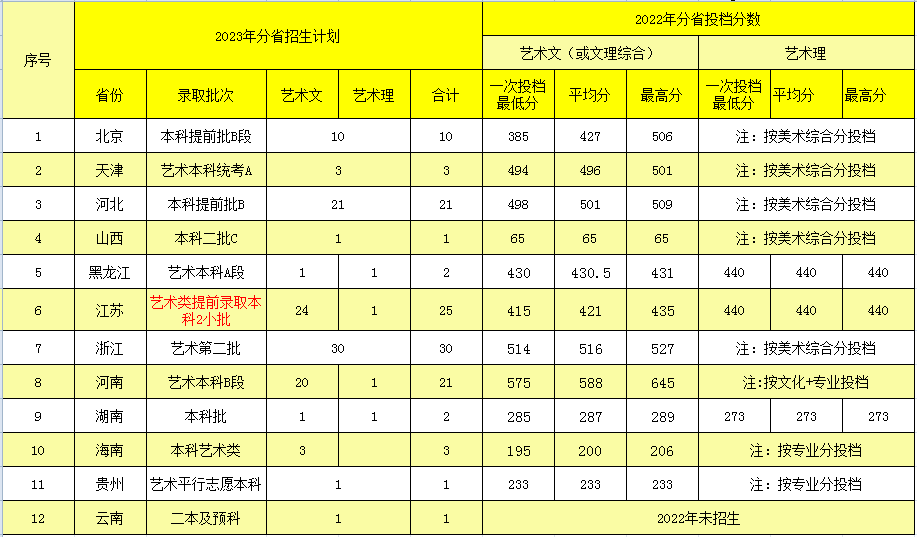 根据教育部统一下达的全日制普通高校招生计划,数字媒体艺术专业面向全国部分省份进行招生,2023年分省招生计划及2022年录取分数情况如下: